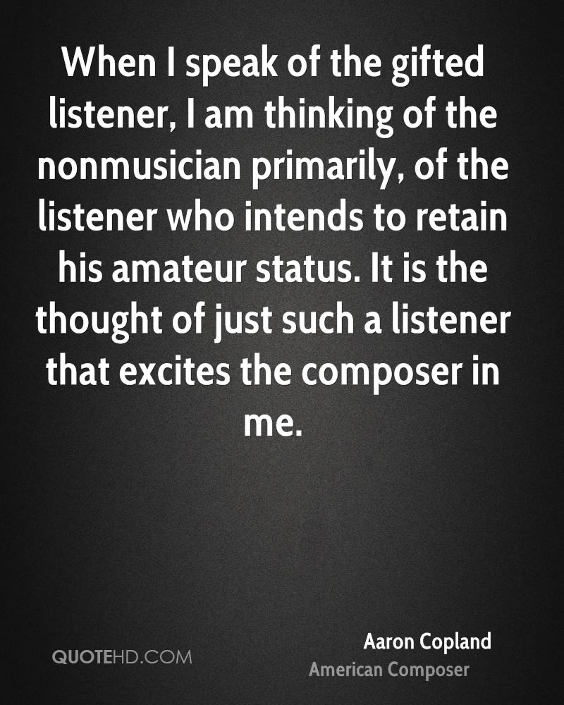 Aaron Copland was an American composer, composition teacher, writer, and later in his career a conductor of his own and other American music. Instrumental in forging a distinctly American style of composition, in his later years he was often referred to as "the Dean of American Composers" and is best known to the public for the works he wrote in the 1930s and 1940s in a deliberately accessible style often referred to as "populist" and which the composer labeled his "vernacular" style. Works in this vein include the ballets Appalachian Spring, Billy the Kid and Rodeo, his Fanfare for the Common Man and Third Symphony. The open, slowly changing harmonies of many of his works are archetypical of what many people consider to be the sound of American music, evoking the vast American landscape and pioneer spirit. In addition to his ballets and orchestral works, he produced music in many other genres including chamber music, vocal works, opera and film scores... (wikipedia)
