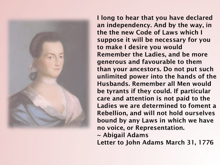 Abigail Adams was the wife of John Adams and the mother of John Quincy Adams. She is now designated the first Second Lady and second First Lady of the United States, although these titles were not in use at the time... (wikipedia)