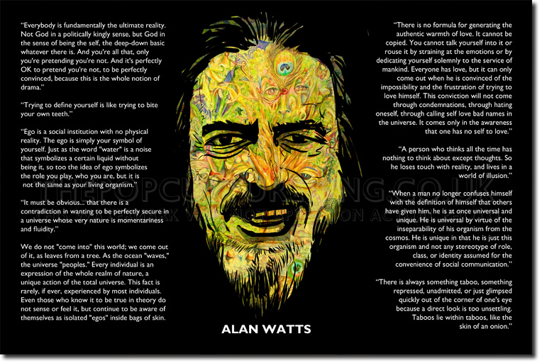 Alan Wilson Watts was a British-born philosopher, writer, and speaker, best known as an interpreter and populariser of Eastern philosophy for a Western audience. Born in Chislehurst, England, he moved to the United States in 1938 and began Zen training in New York. Pursuing a career, he attended Seabury-Western Theological Seminary, where he received a master's degree in theology. Watts became an Episcopal priest in 1945, then left the ministry in 1950 and moved to California, where he joined the faculty of the American Academy of Asian Studies... (wikipedia)