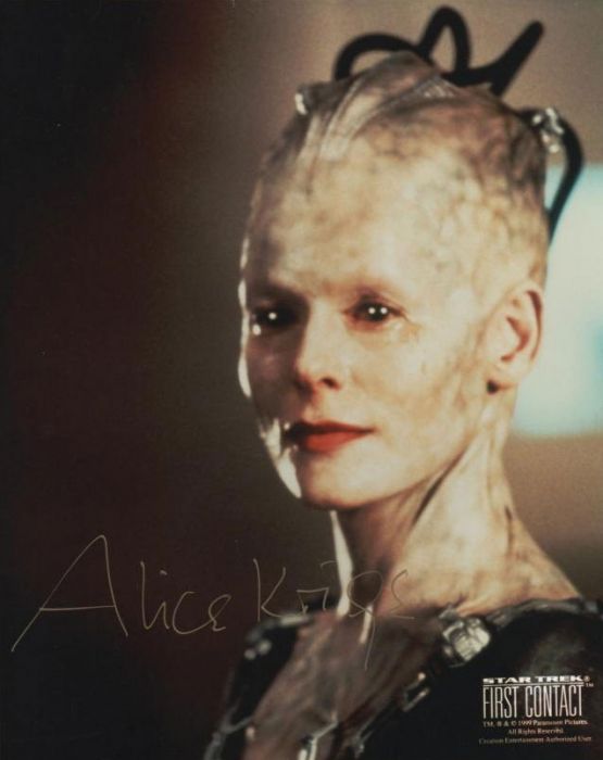 Alice Maud Krige is a South African actress and producer. Her first feature film role was in Chariots of Fire as the Gilbert and Sullivan singer Sybil Gordon. Since then, she has played a variety of roles in various genres. Krige first played the role of the Borg Queen in the motion picture Star Trek: First Contact and reprised the role for the final episode of the television series Star Trek: Voyager. A year after the series ended, she reprised the role in "Borg Invasion 4-D" at Star Trek: The Experience... (wikipedia)