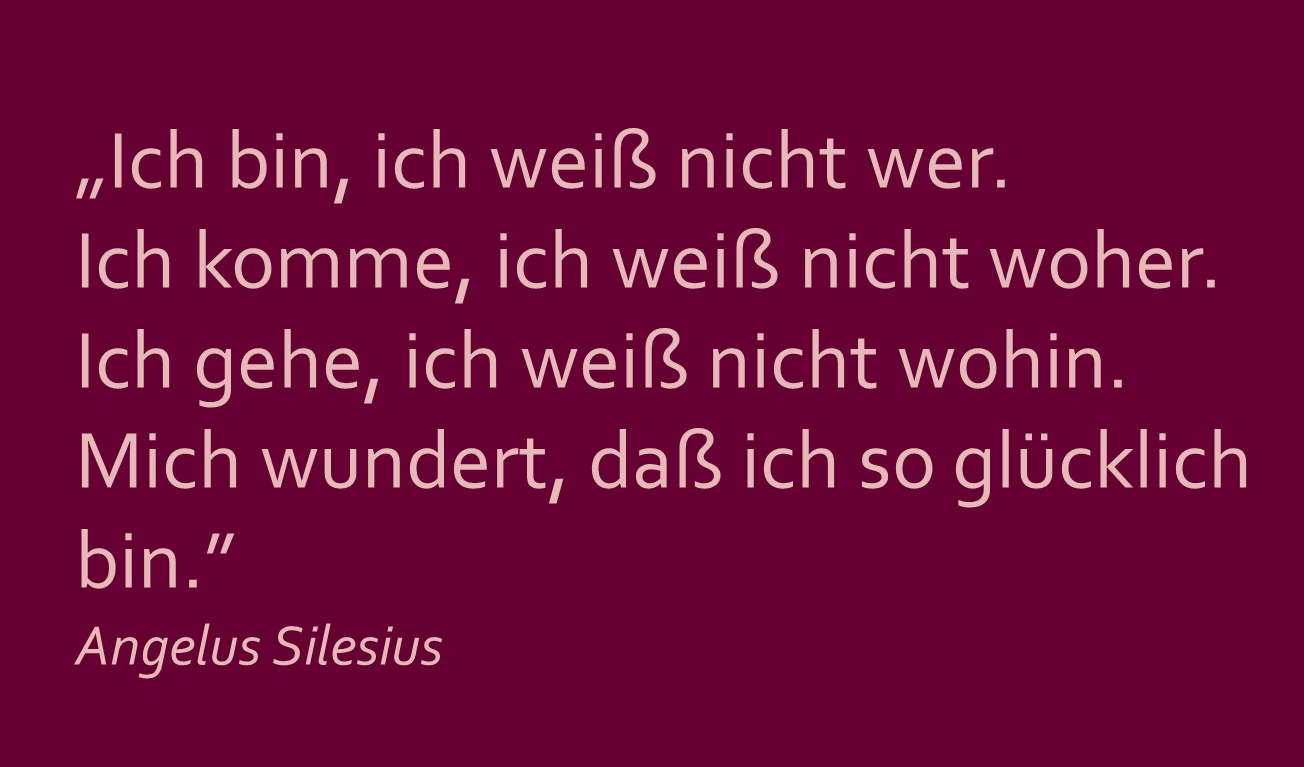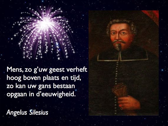 Angelus Silesius , born Johann Scheffler and also known as Johann Angelus Silesius, was a German Catholic priest and physician, known as a mystic and religious poet. Born and raised a Lutheran, he adopted the name Angelus (Latin for "angel" or "heavenly messenger") and the epithet Silesius ("Silesian") on converting to Catholicism in 1653. While studying in the Netherlands, he began to read the works of medieval mystics and became acquainted with the works of the German mystic Jacob Böhme through Böhme's friend, Abraham von Franckenberg. Silesius's mystical beliefs caused tension between him and Lutheran authorities and led to his eventual conversion to Catholicism. He took holy orders under the Franciscans and was ordained a priest in 1661. Ten years later, in 1671, he retired to a Jesuit house where he remained for the rest of his life... (wikipedia)