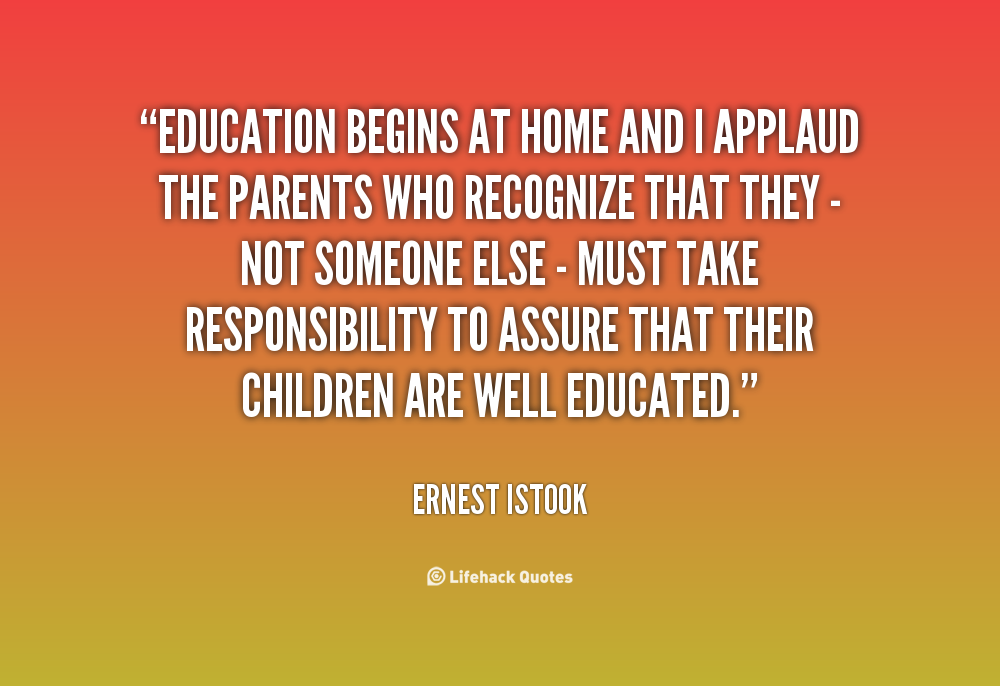 Education begins at home and I applaud the parents who recognize that they - not someone else - must take responsibility to assure that their children are well educated.