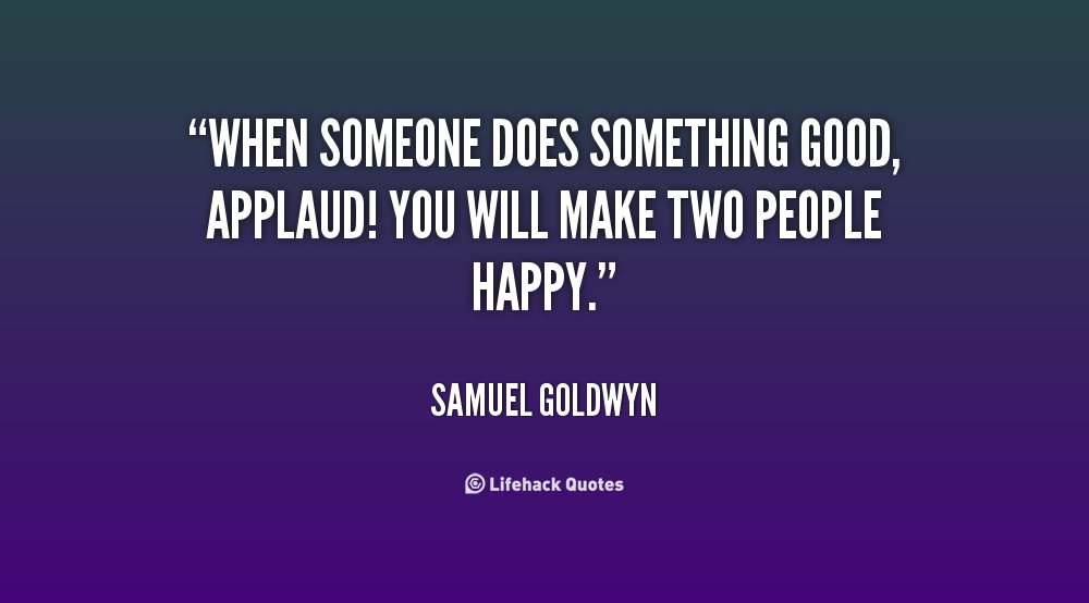 When someone does something good, applaud! You will make two people happy.