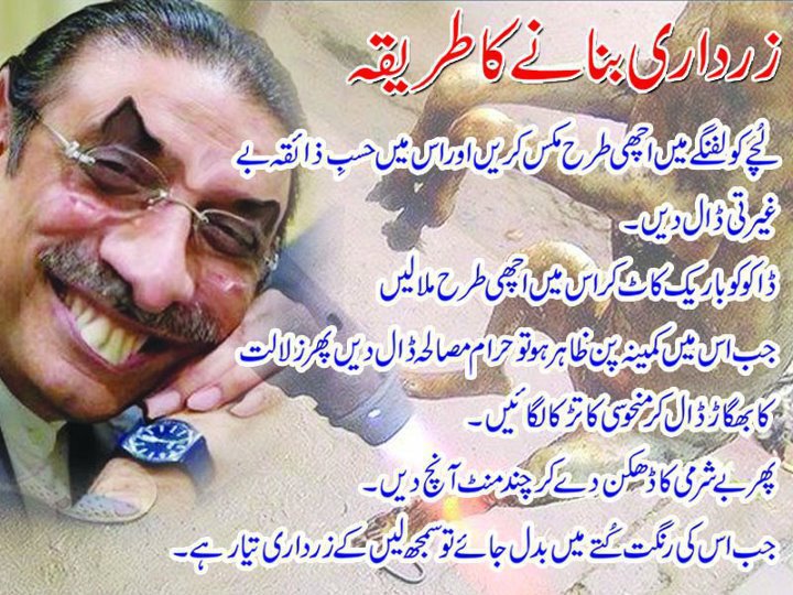 Asif Ali Zardari (Urdu: آصف علی زرداری) Sindhi: آصف علي زرداري); born 26 July 1955) is a Pakistani politician and current co-chairperson of Pakistan People's Party. He served as the 11th President of Pakistan from 2008 to 2013... (wikipedia)