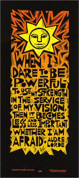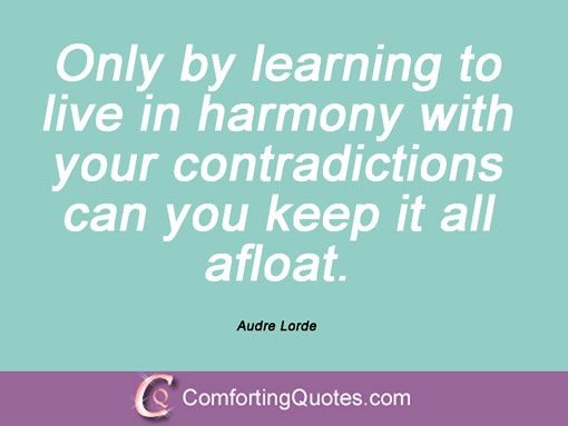 Audre Lorde was a Caribbean-American writer, radical feminist, womanist, lesbian, and civil rights activist. In her own words, Lorde was a "black, lesbian, mother, warrior, poet". Her poems and essays focused on civil rights issues, feminism, and the expression of black female identity. Lorde is best known for technical mastery and emotional expression in her poetry, particularly the poems which express anger and outrage at civil and social injustices she observed throughout her life. She was a champion of intersectional feminism, and life-long explorer of her own identity and the universal identity of African-American women. She died of liver cancer in 1992, at the age of 58... (wikipedia)