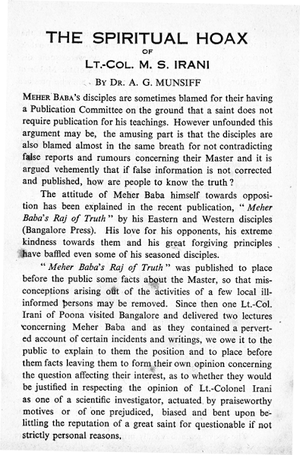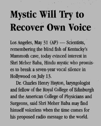 Meher Baba, born Merwan Sheriar Irani, was an Indian spiritual master who said he was the Avatar, God in human form... (wikipedia)