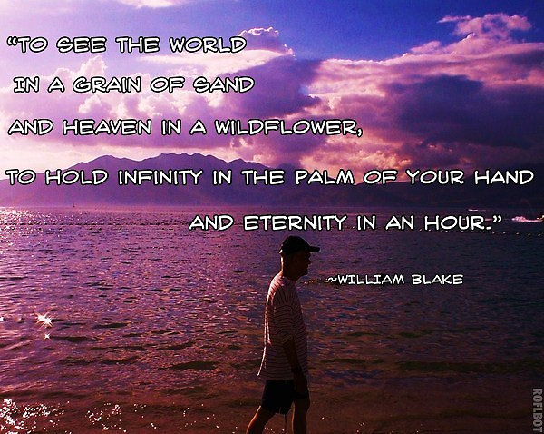 William Blake was an English poet, painter, and printmaker. Largely unrecognised during his lifetime, Blake is now considered a seminal figure in the history of the poetry and visual arts of the Romantic Age. His prophetic poetry has been said to form "what is in proportion to its merits the least read body of poetry in the English language". His visual artistry led one contemporary art critic to proclaim him "far and away the greatest artist Britain has ever produced". In 2002, Blake was placed at number 38 in the BBC's poll of the 100 Greatest Britons. Although he lived in London his entire life, he produced a diverse and symbolically rich œuvre, which embraced the imagination as "the body of God" or "human existence itself"... (wikipedia)