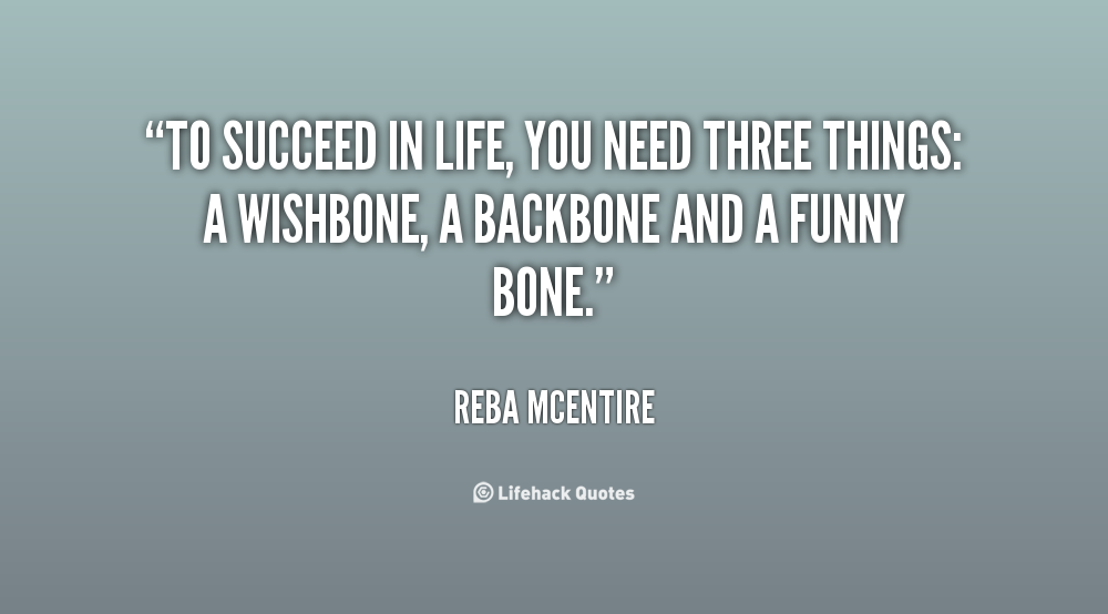 To succeed in life, you need three things: a wishbone, a backbone and a funny bone.