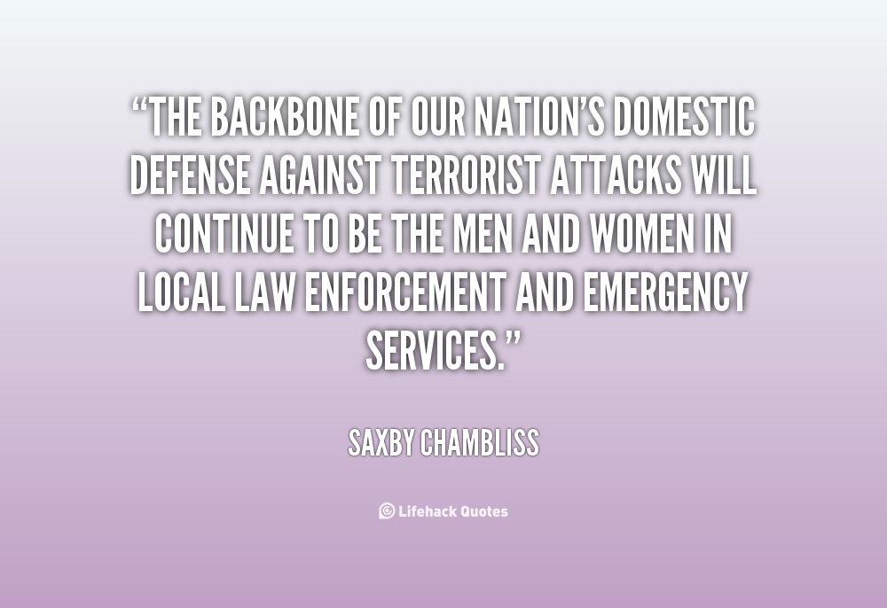 The backbone of our nation's domestic defense against terrorist attacks will continue to be the men and women in local law enforcement and emergency services.