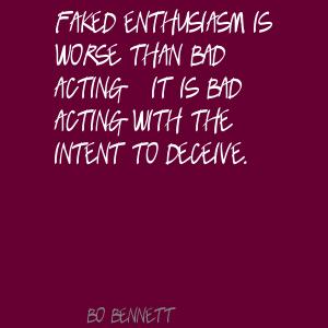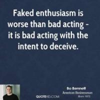 Faked enthusiasm is worse than bad acting - it is bad acting with the intent to deceive.
