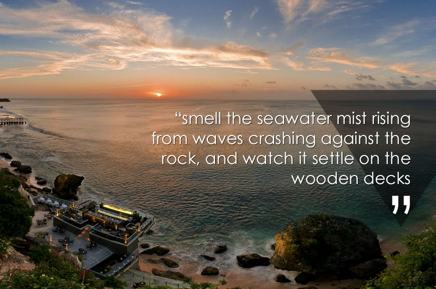 My favorite hotel is the Villa Alilla in Bali. The setting is pure bliss, overlooking the ocean of Uluwhatu; the eye line makes you feel as if you're floating on top of the ocean.