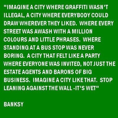 Banksy is an English-based graffiti artist, political activist and film director whose real identity is unknown. His satirical street art and subversive epigrams combine dark humour with graffiti executed in a distinctive stenciling technique. His works of political and social commentary have been featured on streets, walls, and bridges of cities throughout the world. Banksy's work grew out of the Bristol underground scene, which involved collaborations between artists and musicians. Observers have noted that his style is similar to Blek le Rat, who began to work with stencils in 1981 in Paris. Banksy says that he was inspired by "3D", a graffiti artist who later became a founding member of Massive Attack, an English musical group... (wikipedia)