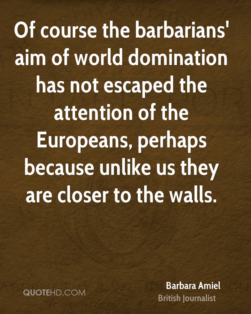 Of course the barbarians' aim of world domination has not escaped the attention of the Europeans, perhaps because unlike us they are closer to the walls.