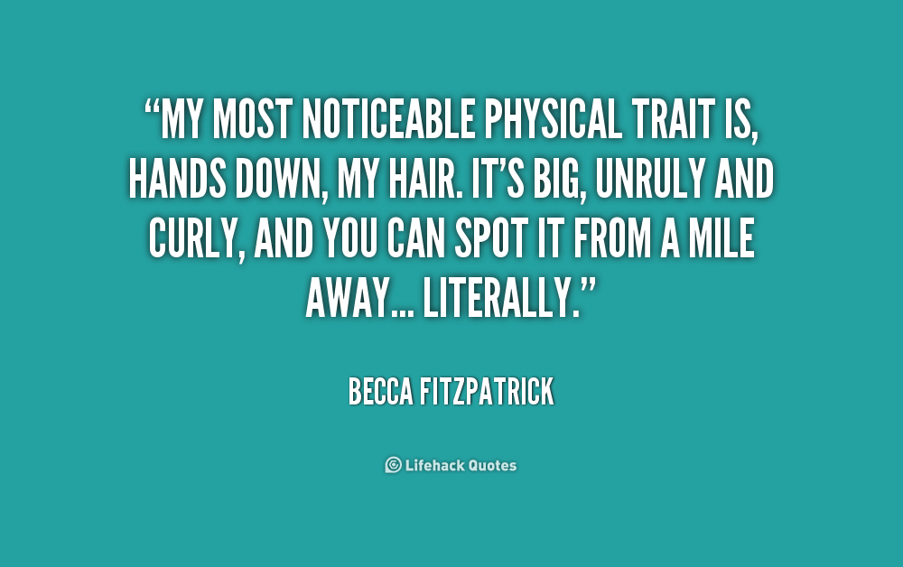 My most noticeable physical trait is, hands down, my hair. It's big, unruly and curly, and you can spot it from a mile away... literally.