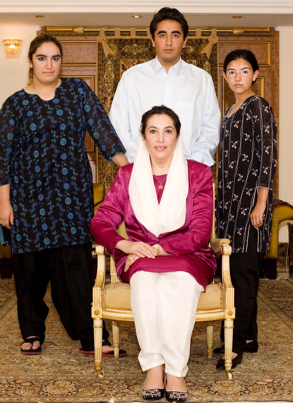 Benazir Bhutto was the 11th Prime Minister of Pakistan, serving two non-consecutive terms in 1988–90 and then 1993–96. A scion of the politically powerful Bhutto family, she was the eldest daughter of Zulfikar Ali Bhutto, a former prime minister himself who founded the centre-left Pakistan Peoples Party... (wikipedia)