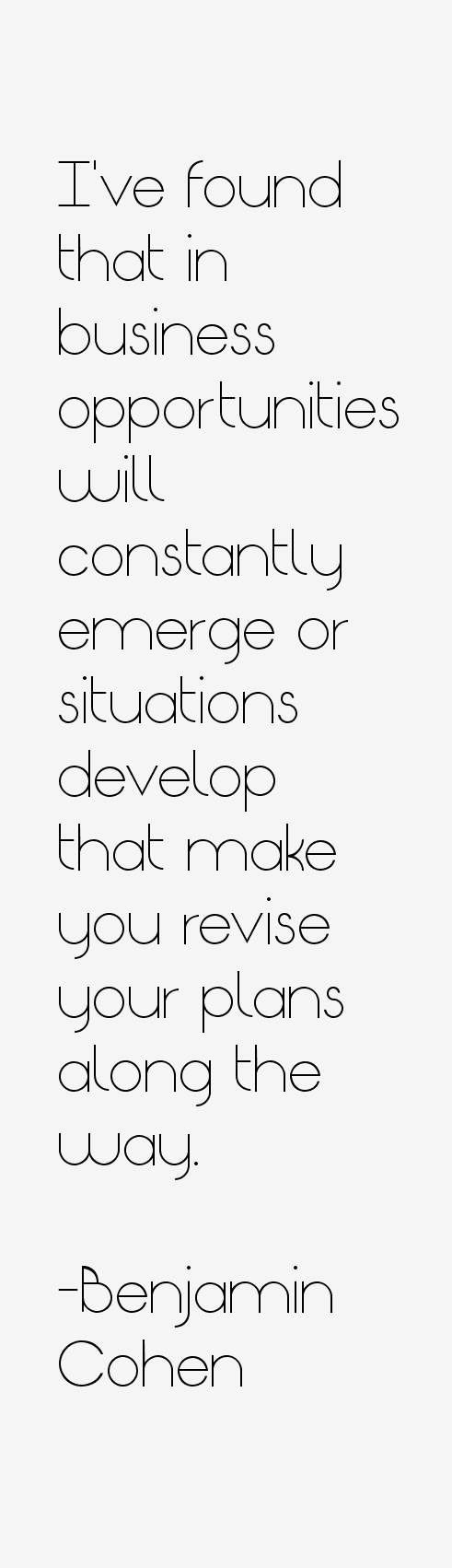 I've found that in business opportunities will constantly emerge or situations develop that make you revise your plans along the way.