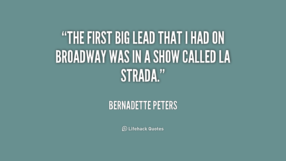 Bernadette Peters is an American actress, singer and children's book author. Over the course of a career that has spanned five decades, she has starred in musical theatre, films and television, as well as performing in solo concerts and recordings. She is one of the most critically acclaimed Broadway performers, having received nominations for seven Tony Awards, winning two, and nine Drama Desk Awards, winning three. Four of the Broadway cast albums on which she has starred have won Grammy Awards... (wikipedia)