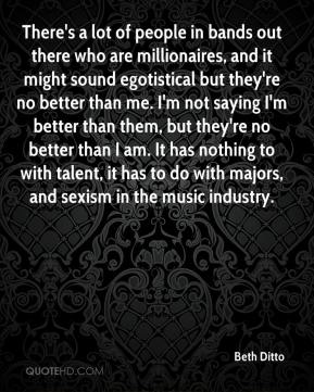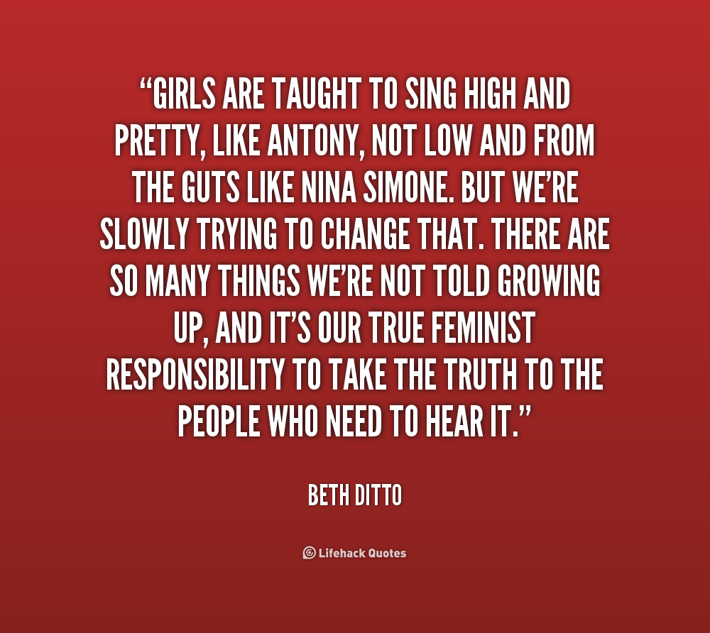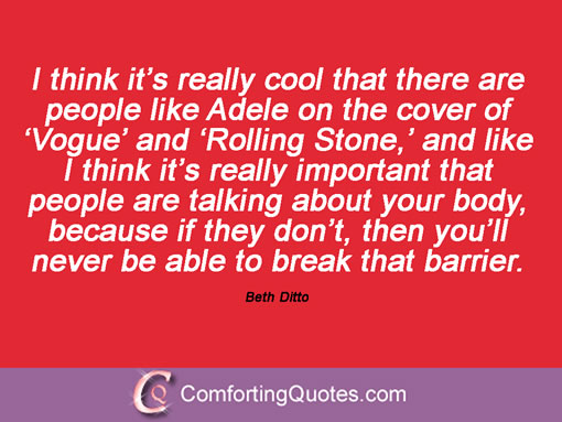 Mary Beth Patterson, known by her stage name Beth Ditto, is an American singer-songwriter, most notable for her work with the indie rock band Gossip and whose voice has been compared to Etta James, Janis Joplin and Tina Turner. She is often reported describing herself as a "fat, feminist lesbian from Arkansas"... (wikipedia)