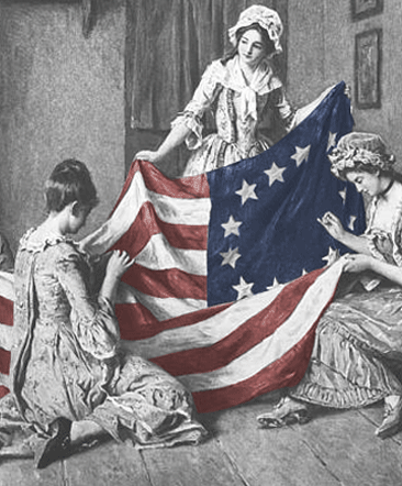 Elizabeth Phoebe "Betsy" Ross, née Griscom, also known by her second and third married names, Ashburn and Claypoole, is widely credited with making the first American flag purportedly in 1776, according to family tradition, upon a visit from General George Washington, commander-in-chief of the Continental Army, and changing the shape of the stars he had sketched for the flag from six-pointed to five-pointed by demonstrating on the spot that it was not difficult to cut the latter. However, there is no archival evidence or other recorded verbal tradition to substantiate this story of the first American flag, and it appears that the story first surfaced in the writings of her grandson in the 1870s, with no mention or documentation in earlier decades... (wikipedia)