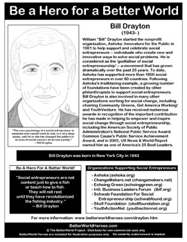 William "Bill" Drayton, is a social entrepreneur. Drayton was named by U.S. News & World Report as one of America's 25 Best Leaders in 2005. He is responsible for the rise of the phrase "social entrepreneur", a concept first found in print in 1972... (wikipedia)