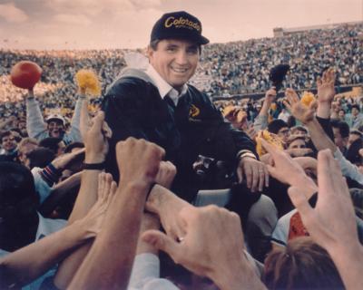 William Paul McCartney is a former American football player and coach and the founder of the Promise Keepers men's ministry. He was the head football coach at the University of Colorado Boulder from 1982 to 1994, where he compiled a record of 93–55–5 and won three consecutive Big Eight Conference titles between 1989 and 1991. McCartney's 1990 team was crowned as national champions by the Associated Press, splitting the title with the Georgia Tech team that topped the final Coaches' Poll rankings... (wikipedia)