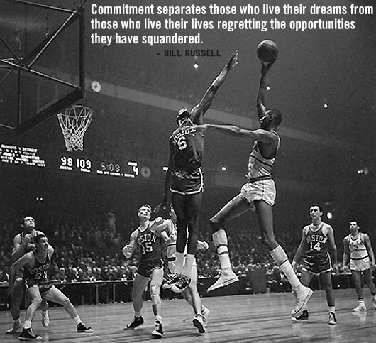 William Felton "Bill" Russell is an American retired professional basketball player. Russell played center for the Boston Celtics of the National Basketball Association from 1956 to 1969. A five-time NBA Most Valuable Player and a twelve-time All-Star, he was the centerpiece of the Celtics dynasty, winning eleven NBA championships during his thirteen-year career. Along with Henri Richard of the National Hockey League's Montreal Canadiens, Russell holds the record for the most championships won by an athlete in a North American sports league. Before his professional career, Russell led the University of San Francisco to two consecutive NCAA championships. He also won a gold medal at the 1956 Summer Olympics as captain of the U.S. national basketball team... (wikipedia)