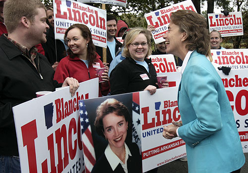 Blanche Meyers Lambert Lincoln was a U.S. Senator from Arkansas from 1999 to 2011. Lincoln, a member of the Democratic Party, was first elected to the Senate in 1998; she was the first woman elected to the Senate from Arkansas since Hattie Caraway in 1932 and, at age 38, was the youngest woman ever elected to the Senate. She previously served in the U.S. House of Representatives, representing Arkansas's 1st congressional district from 1993 to 1997... (wikipedia)