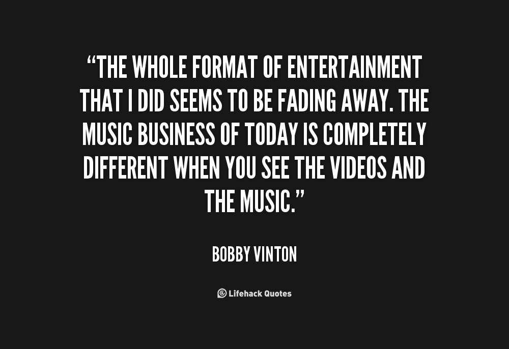 The whole format of entertainment that I did seems to be fading away. The music business of today is completely different when you see the videos and the music.