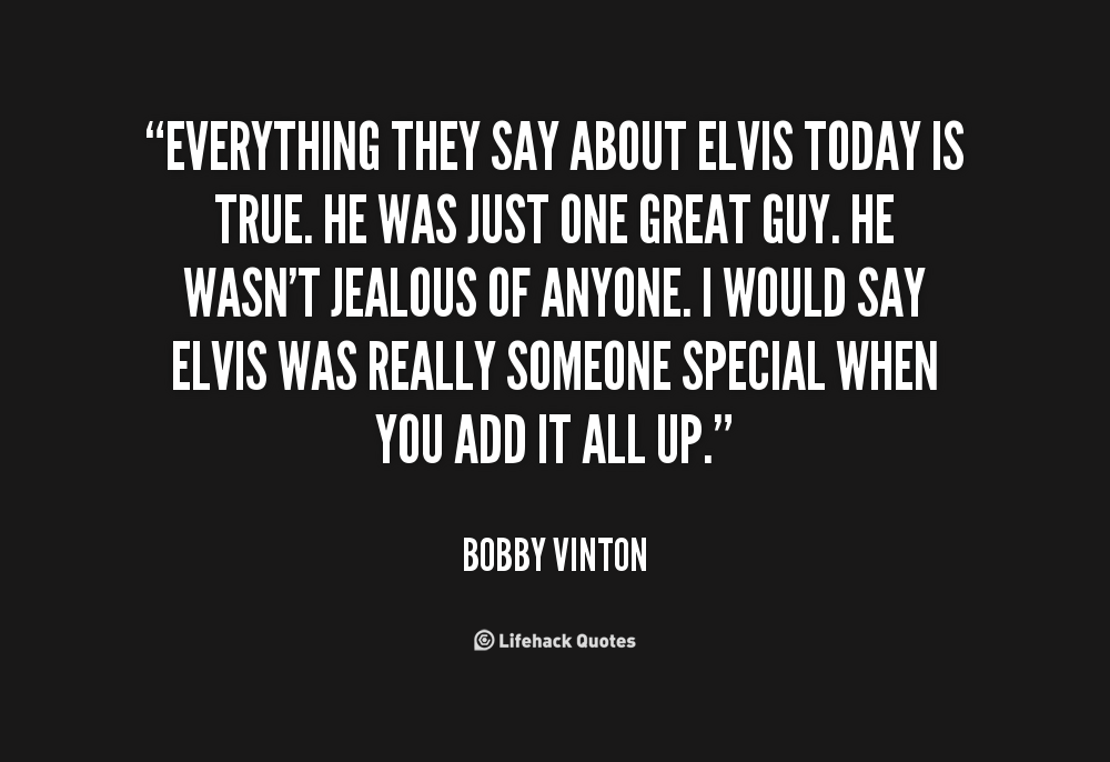 Everything they say about Elvis today is true. He was just one great guy. He wasn't jealous of anyone. I would say Elvis was really someone special when you add it all up.
