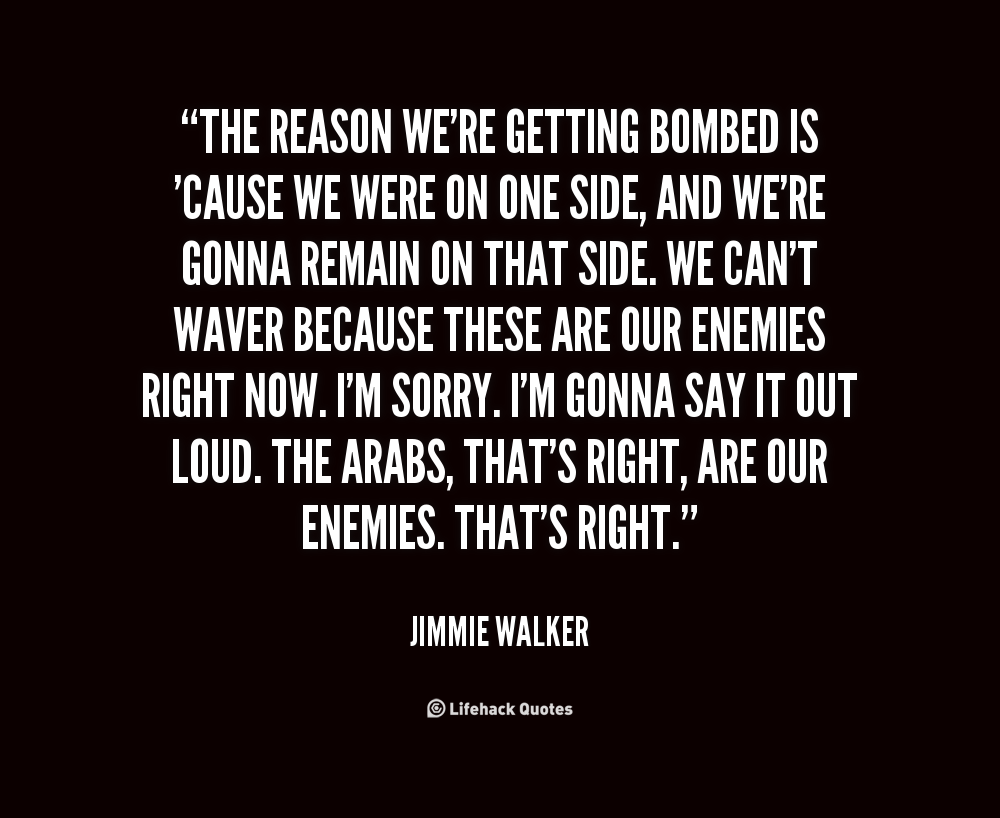 The reason we're getting bombed is 'cause we were on one side, and we're gonna remain on that side. We can't waver because these are our enemies right now. I'm sorry. I'm gonna say it out loud. The Arabs, that's right, are our enemies. That's right.