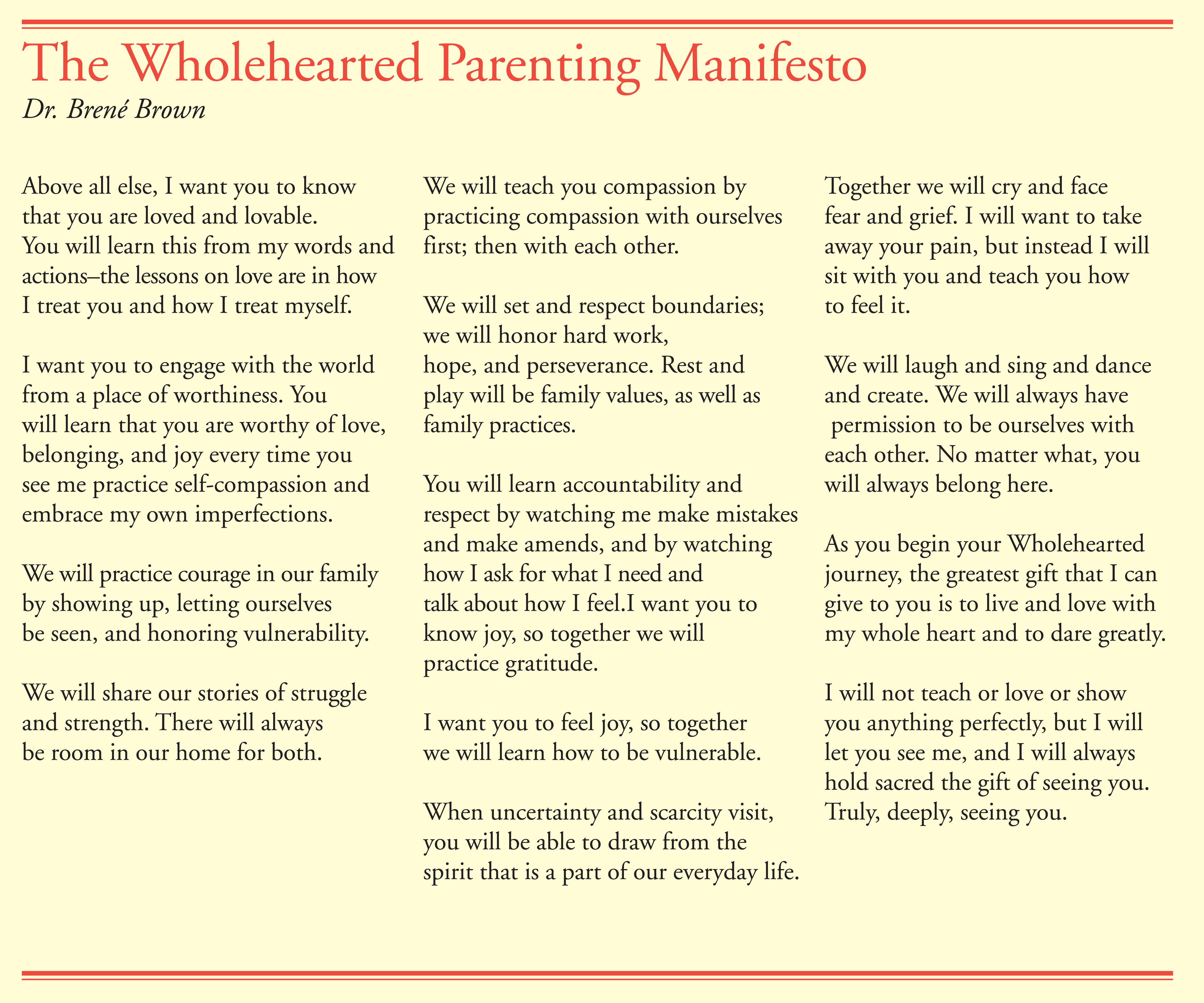 Brené Brown is an American scholar, author, and public speaker, who is currently a research professor at the University of Houston Graduate College of Social Work. Over the last twelve years she has been involved in research on a range of topics, including vulnerability, courage, worthiness, and shame. She is the author of two #1 New York Times Bestsellers: The Gifts of Imperfection and Daring Greatly. She and her work have been featured on PBS,NPR,TED, and CNN... (wikipedia)