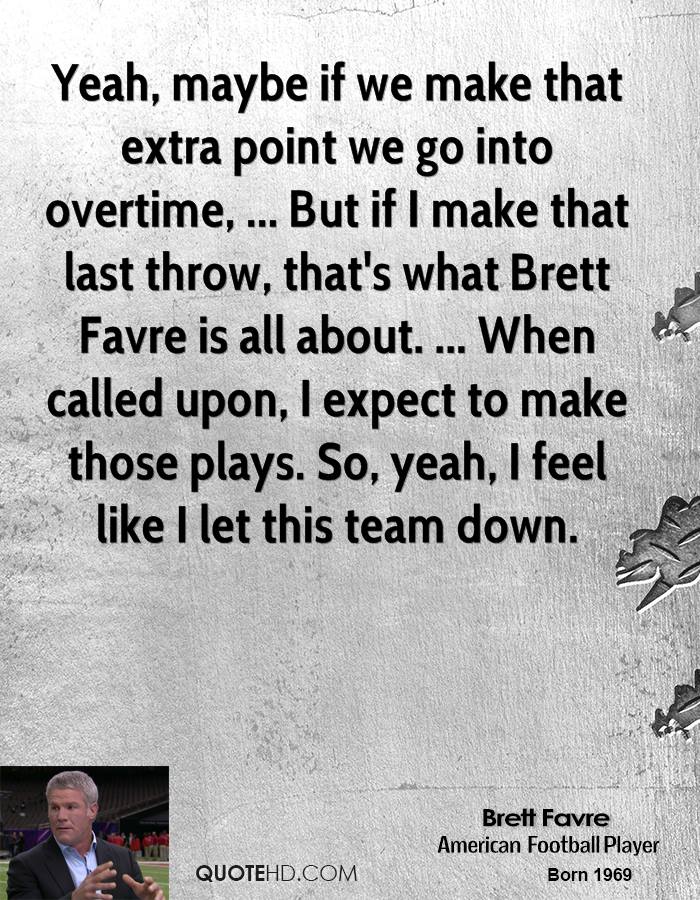 Brett Lorenzo Favre is a former American football quarterback who spent the majority of his career with the Green Bay Packers of the National Football League. He was a 20-year veteran of the NFL, having played quarterback for the Atlanta Falcons, Green Bay Packers, New York Jets, and Minnesota Vikings. Favre was the first quarterback in NFL history to throw for over 70,000 yards, over 6,000 completions, and over 10,000 pass attempts... (wikipedia)