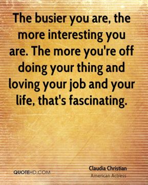 The busier you are, the more interesting you are. The more you're off doing your thing and loving your job and your life, that's fascinating.