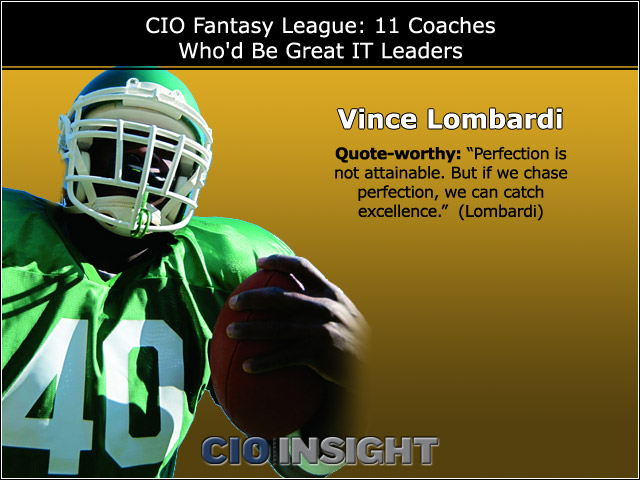Vincent Thomas "Vince" Lombardi, was an American football player, coach, and executive. He is best known as the head coach of the Green Bay Packers during the 1960s, where he led the team to three straight and five total National Football League championships in seven years, in addition to winning the first two Super Bowls following the 1966 and 1967 NFL seasons. Lombardi is considered by many to be one of the best and most successful coaches in Professional Football history. The National Football League's Super Bowl trophy is named in his honor. He was enshrined in the Pro Football Hall of Fame in 1971... (wikipedia)