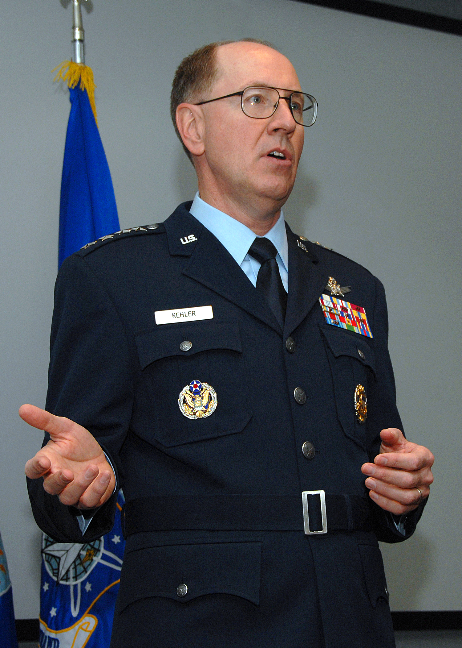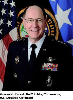 Claude Robert "Bob" Kehler, is a retired United States Air Force general who served as Commander, U.S. Strategic Command from January 28, 2011 to November 15, 2013. He previously served as Commander, Air Force Space Command from October 12, 2007 to January 5, 2011. As commander of Air Force Space Command, he was responsible for the development, acquisition and operation of the Air Force's space and missile systems. He oversaw a global network of satellite command and control, communications, missile warning and launch facilities, and ensures the combat readiness of America's intercontinental ballistic missile force. He led more than 39,700 space professionals who provide combat forces and capabilities to North American Aerospace Defense Command and U.S. Strategic Command. He is currently responsible for the plans and operations for all U.S. forces conducting strategic deterrence and Department of Defense space and cyberspace operations. He officially retired from the Air Force on January 1, 2014 after over 39 years of service... (wikipedia)