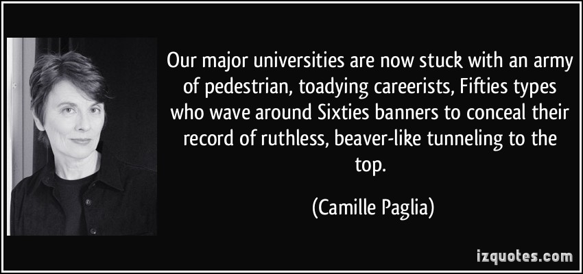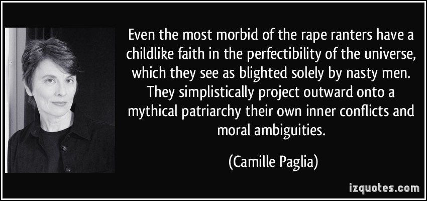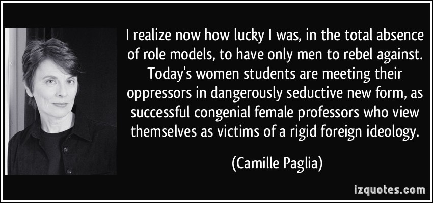 Camille Anna Paglia is an American academic and social critic. Paglia has been a professor at the University of the Arts in Philadelphia, Pennsylvania, since 1984.The New York Times has described her as "first and foremost an educator". Paglia is known for her critical views of many aspects of modern culture, including liberalism... (wikipedia)