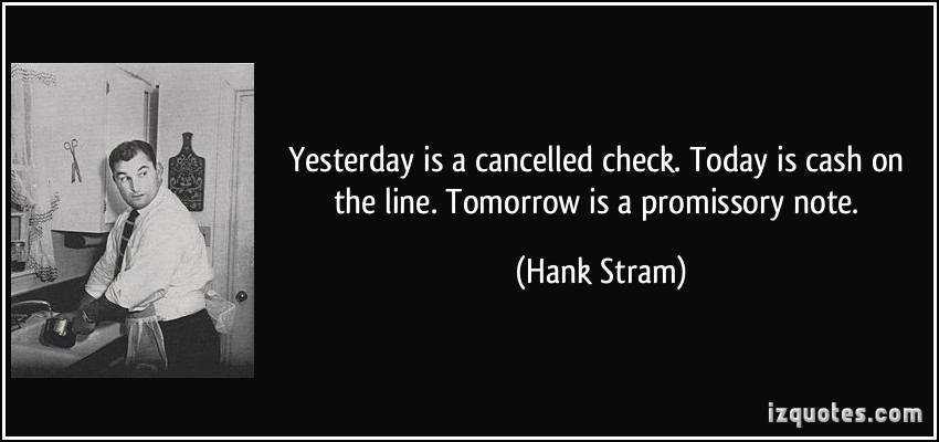 Yesterday is a cancelled check. Today is cash on the line. Tomorrow is a promissory note.