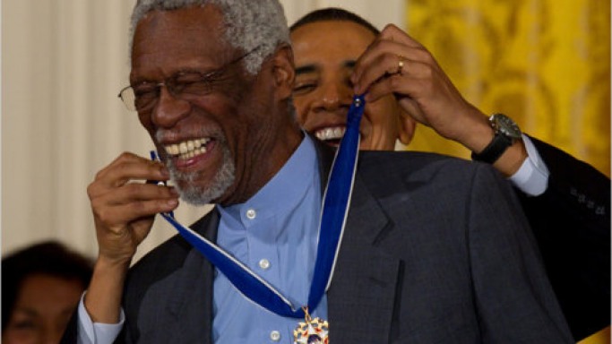 William Felton "Bill" Russell is an American retired professional basketball player. Russell played center for the Boston Celtics of the National Basketball Association from 1956 to 1969. A five-time NBA Most Valuable Player and a twelve-time All-Star, he was the centerpiece of the Celtics dynasty, winning eleven NBA championships during his thirteen-year career. Along with Henri Richard of the National Hockey League's Montreal Canadiens, Russell holds the record for the most championships won by an athlete in a North American sports league. Before his professional career, Russell led the University of San Francisco to two consecutive NCAA championships. He also won a gold medal at the 1956 Summer Olympics as captain of the U.S. national basketball team... (wikipedia)