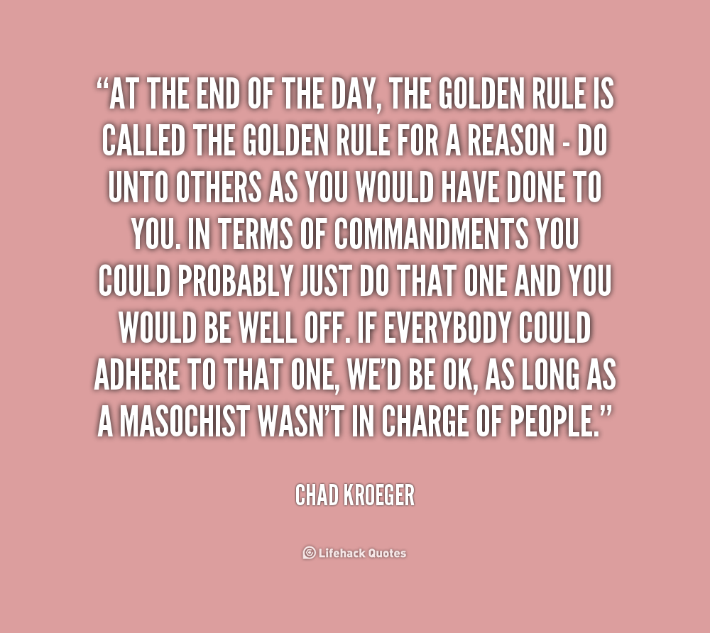 At the end of the day, the Golden Rule is called the Golden Rule for a reason - do unto others as you would have done to you. In terms of commandments you could probably just do that one and you would be well off. If everybody could adhere to that one, we'd be OK, as long as a masochist wasn't in charge of people.
