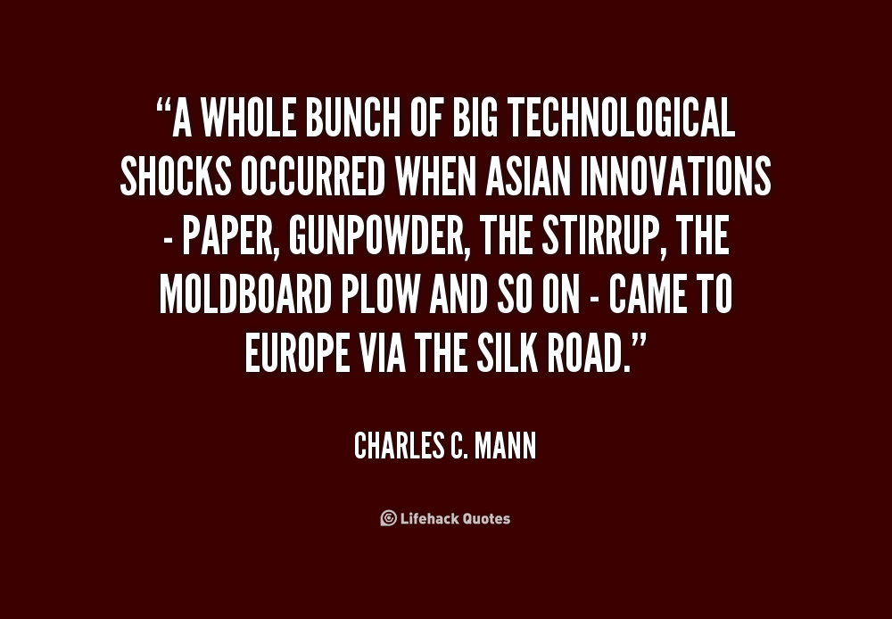A whole bunch of big technological shocks occurred when Asian innovations - paper, gunpowder, the stirrup, the moldboard plow and so on - came to Europe via the Silk Road.