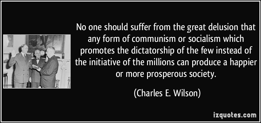No one should suffer from the great delusion that any form of communism or socialism which promotes the dictatorship of the few instead of the initiative of the millions can produce a happier or more prosperous society.