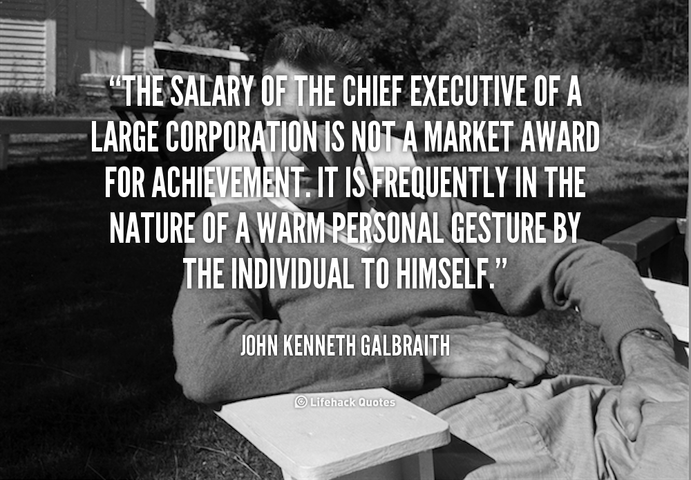 The salary of the chief executive of a large corporation is not a market award for achievement. It is frequently in the nature of a warm personal gesture by the individual to himself.
