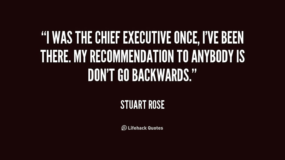 I was the chief executive once, I've been there. My recommendation to anybody is don't go backwards.