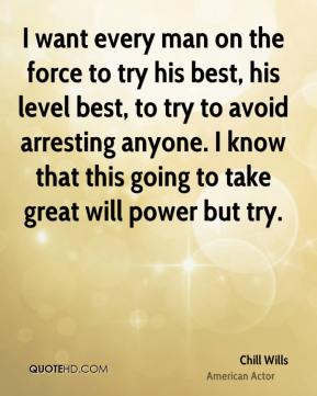 I want every man on the force to try his best, his level best, to try to avoid arresting anyone. I know that this going to take great will power but try.