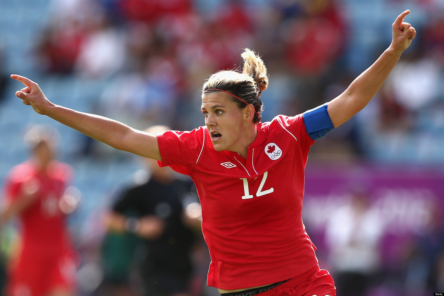 Christine Margaret Sinclair is a Canadian soccer player and captain of the Canadian national team. She plays professionally for the Portland Thorns FC in the National Women's Soccer League as a forward, and previously played for FC Gold Pride and Western New York Flash in the Women's Professional Soccer. An Olympic bronze medalist and twelve-time recipient of the Canada Soccer Player of the Year award, Sinclair is Canada's all-time leading scorer and as of December 14, 2015 tied second worldwide in all-time international goals scored with Mia Hamm and behind only Abby Wambach... (wikipedia)