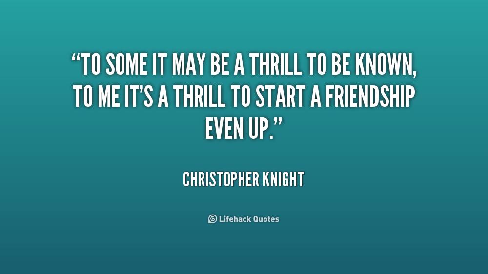 To some it may be a thrill to be known, to me it's a thrill to start a friendship even up.