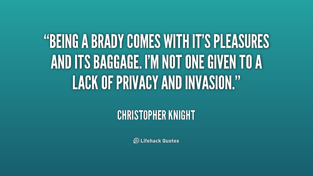 Being a Brady comes with it's pleasures and its baggage. I'm not one given to a lack of privacy and invasion.