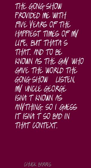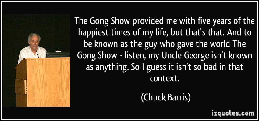 Charles Hirsch "Chuck" Barris is an American game show creator, producer, and host. He is best known for hosting The Gong Show and creating The Dating Game and The Newlywed Game. He is also a songwriter, who wrote the hit "Palisades Park" for Freddy Cannon and the author of Confessions of a Dangerous Mind, his autobiography, which became a film directed by George Clooney... (wikipedia)