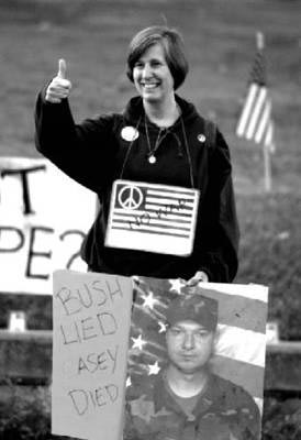 Cindy Lee Miller Sheehan is an American anti-war activist, whose son, U.S. Army Specialist Casey Sheehan, was killed by enemy action during the Iraq War. She attracted national and international media attention in August 2005 for her extended antiwar protest at a makeshift camp outside President George W. Bush's Texas ranch—a stand that drew both passionate support and criticism. Sheehan ran unsuccessfully for Congress in 2008. She is a vocal critic of President Barack Obama's foreign policy. Her memoir, Peace Mom: A Mother's Journey Through Heartache to Activism, was published in 2006... (wikipedia)