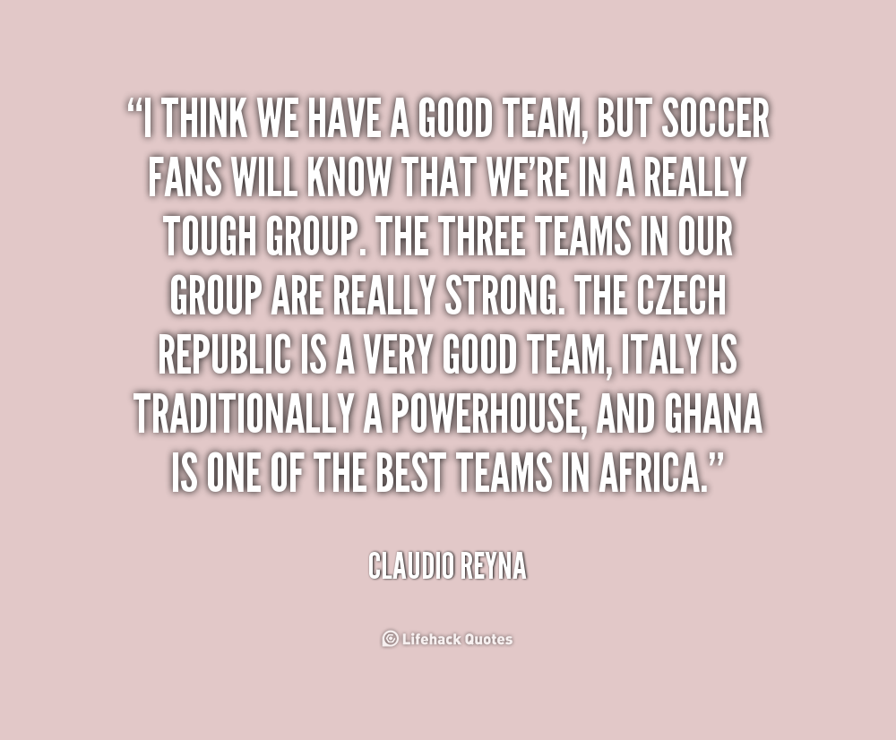 I think we have a good team, but soccer fans will know that we're in a really tough group. The three teams in our group are really strong. The Czech Republic is a very good team, Italy is traditionally a powerhouse, and Ghana is one of the best teams in Africa.